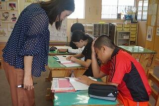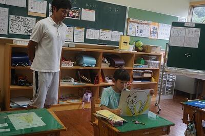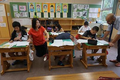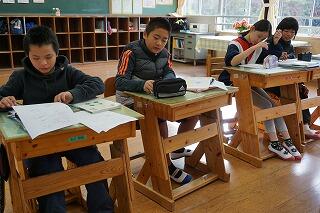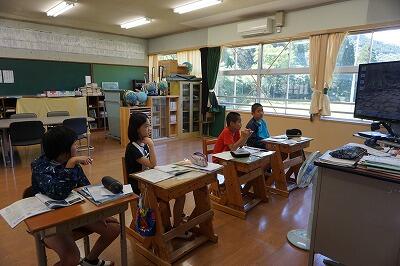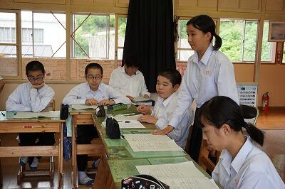 4年生の国語では、読み取ったことを元気に発表していました。2年生と合同音楽の授業もリズムに合わせて楽しく歌いました。