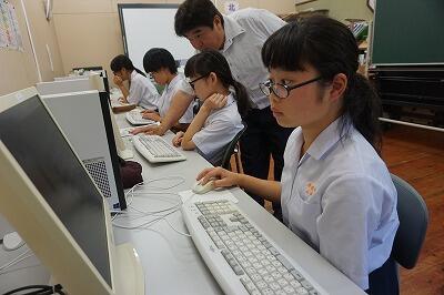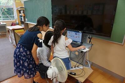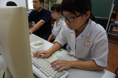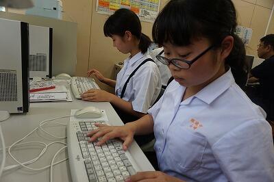 小学生は、パソコンを使って名刺作りをしたり、社会では、自分の行ってみたい都道府県を調べたりしていました。