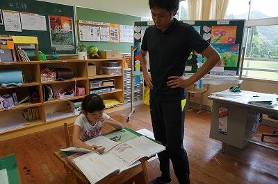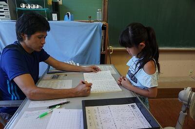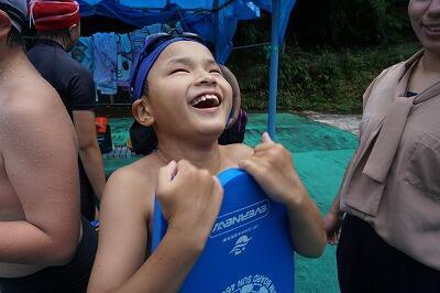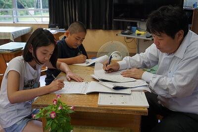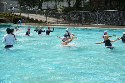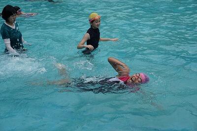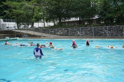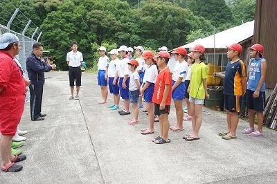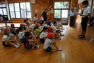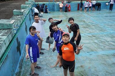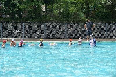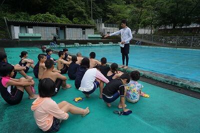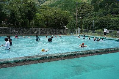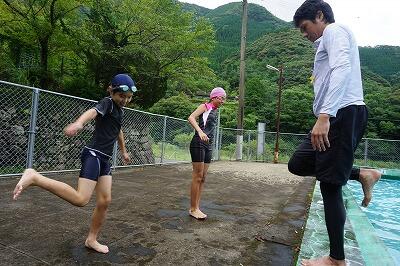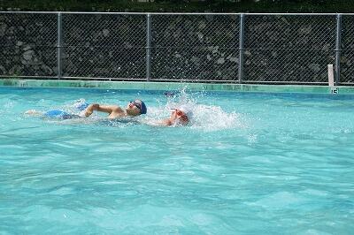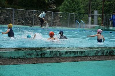 プールは、旧小学校まで歩いて行き、小中学生みんなで行います。昨日に引き続き、クロールと平泳ぎの練習をがんばりました。