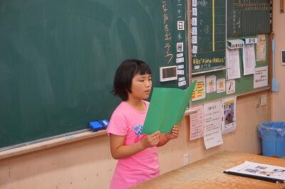 朝は全校集会があり、代表で2名の子どもが楽しかった行事の感想を発表しました。とても堂々と発表していました。