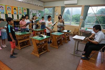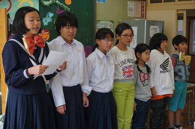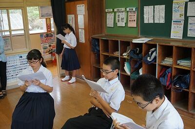 この後の朝の会では、中学校の先生のギターに合わせて月の歌を歌っていました。歌っていいですね