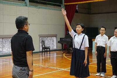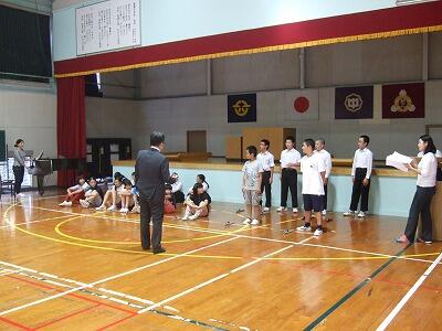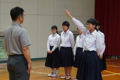 今朝の集会は、5日に行われる中体連県大会の推戴式がありました。
