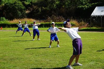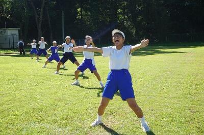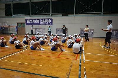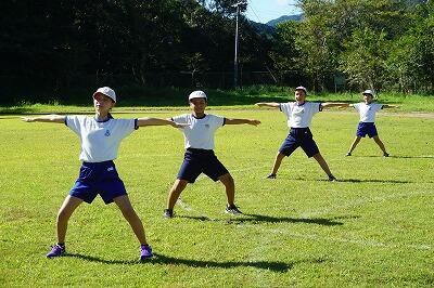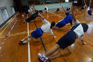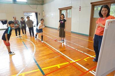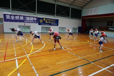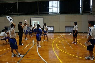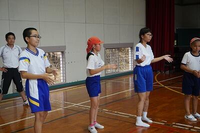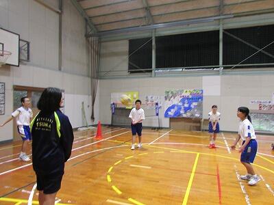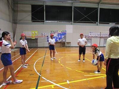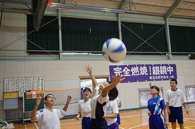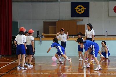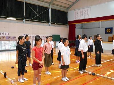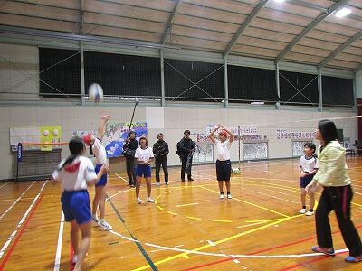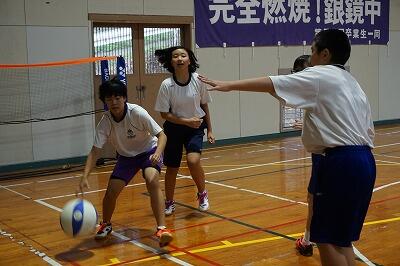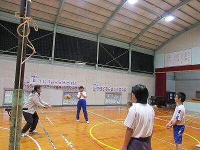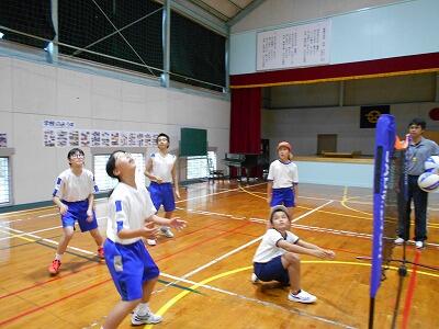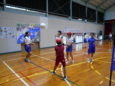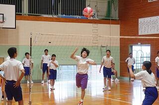 体育の授業では、小学校、中学校共にバレーボールに取り組んでいます。