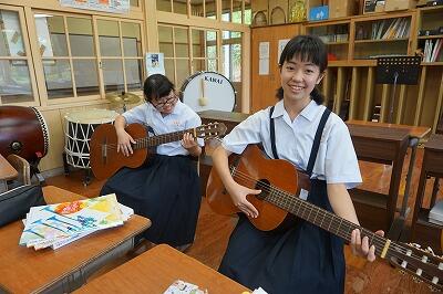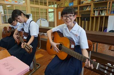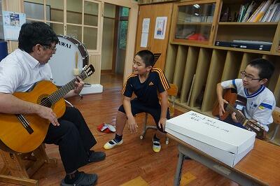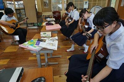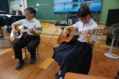 中学3年生は、音楽でギターの講師を招き、授業をしていただきました。