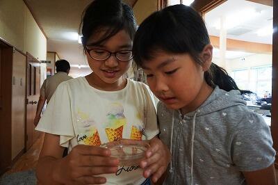 水槽には、小学校5年生が理科で観察していたメダカの赤ちゃんが!!小さな小さな赤ちゃんにみんな感動しています
