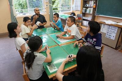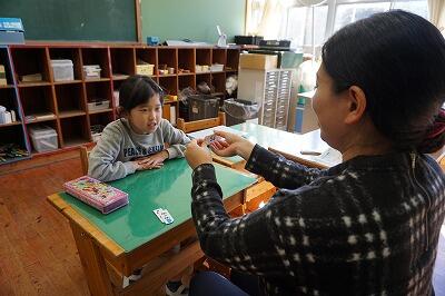 国語や英語の授業では、説明文を読み取ったり、アルファベットのカードゲームをしたりしました。