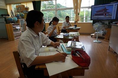 中学生は、定期テストに向けていつも以上に勉強し、今日は社会のスキルアップに取り組みました。