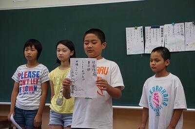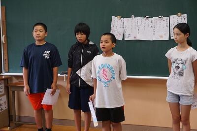 小学2年生が、昨日の音楽大会の感想を発表し、英検やサイエンスコンクールなどたくさんの表彰がありました。