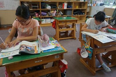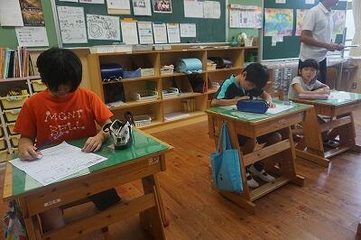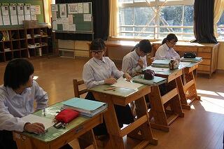 1時間目には、単元の区切りで、確かめのためのドリルなど、「書く」活動を行っている学年が多かったようです。大