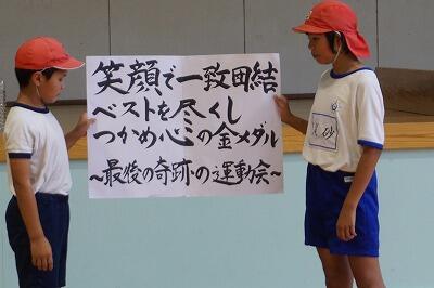 今年のスローガンは~何事にもチャレンジ!!知識を深め、仲良く笑顔で協力し合う西都銀上学園~に決定しました。