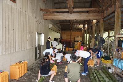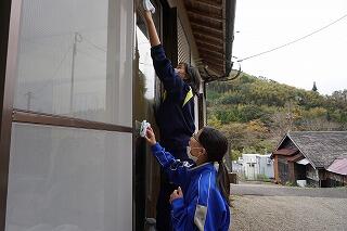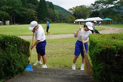 中学生は、3、4時間目に山村憩いの家で奉仕作業にも取り組みました。使いやすい施設になるように、できる限りの