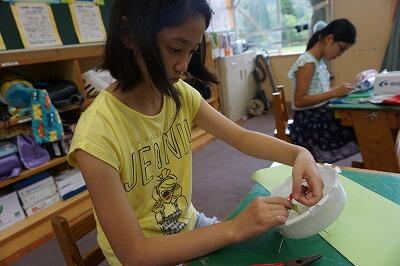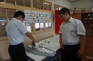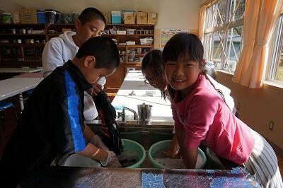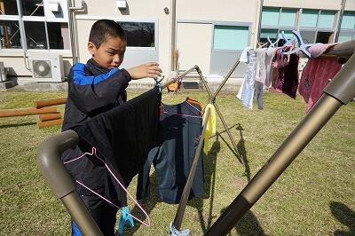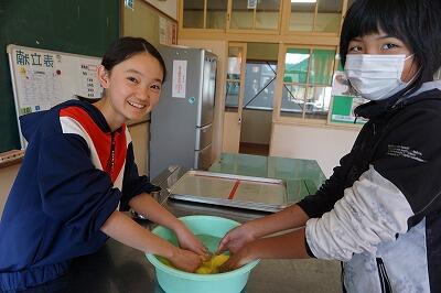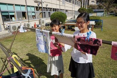 ということで、今日は小学5,6年生の家庭科で洗濯の学習です。洗濯物の量に合わせて、水や洗剤を入れて手洗いをしました。