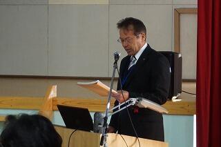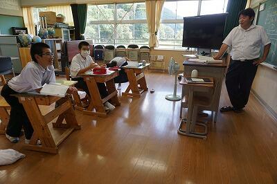 おいでになった先生方は、体育館で全体会を行われました。校長先生のご挨拶や、黒木教頭先生による本校の取組
