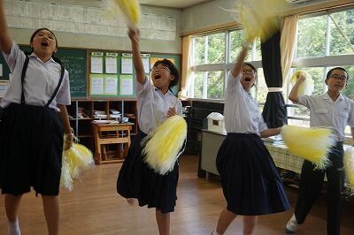 中学1年生は、毎年体育大会で踊る棒踊りを映像を見ながら思い出していました。今年も楽しみですね☆