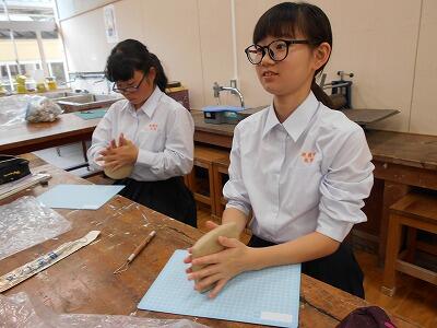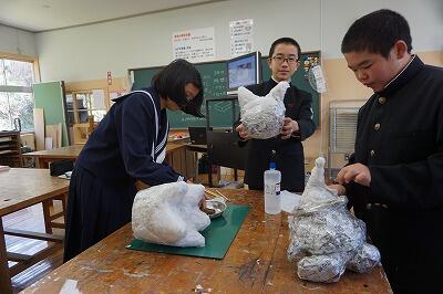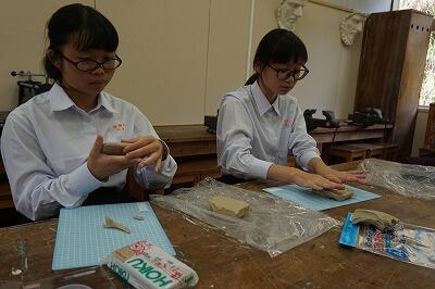 中学2年生は、ランタンの形作り・3年生は、粘土で型作りをしました。