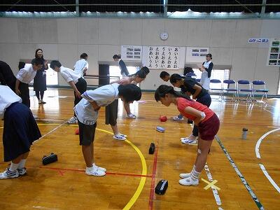 にした礼法指導教室。日章学園高校の先生と高校2年生の先輩方に教えて