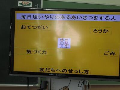 3年生は、道徳の時間テキストを読んで大事な言葉をみんなでまとめていました。