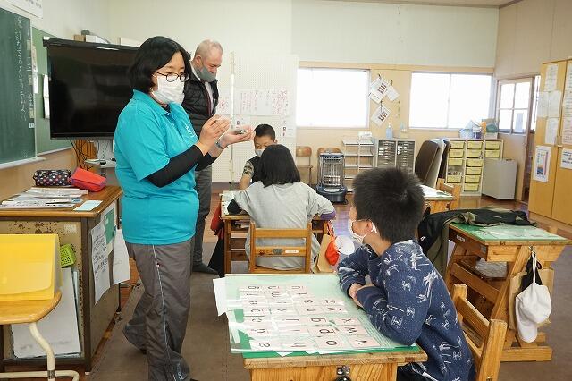 小学6年生の英語の授業の様子です。英語で将来の夢について発表するため、まずは様々な職業を英語で何というのかカルタなどをしながら学習しました。