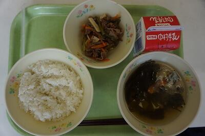 麦ごはん・牛乳・大豆の磯煮・春雨の酢の物