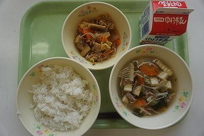 麦ごはん、牛乳、魚つみれ汁、きんぴらごぼう