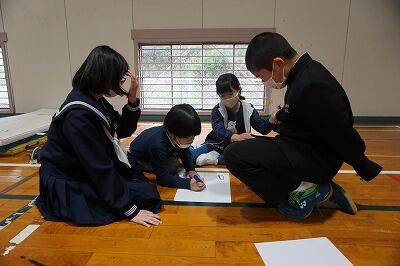 小中合同で班を作り、レクレーションに取り組んでいる様子です。