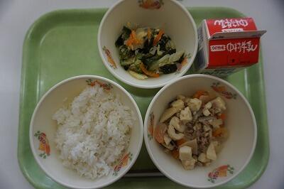 今日の給食は、麦ごはん、牛乳、豚汁、いわしの生姜煮昆布添えでした。いわしの骨までやわらかく、おいしく食べることができました。明日からまたしばらく給食が食べられなくなってしまうことがとても残念です。
