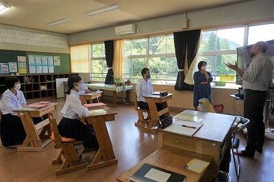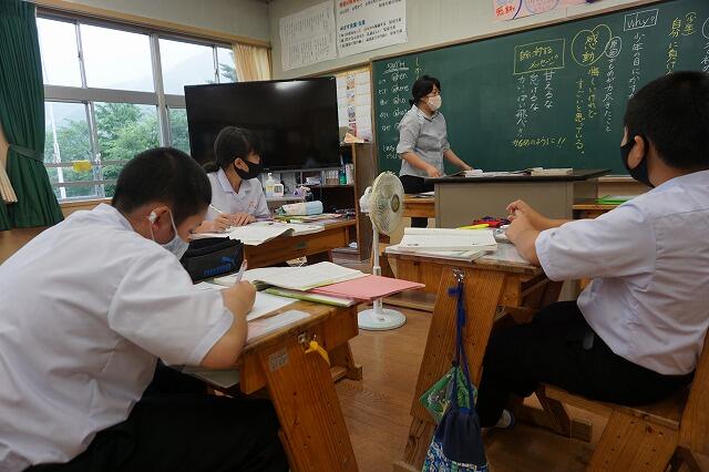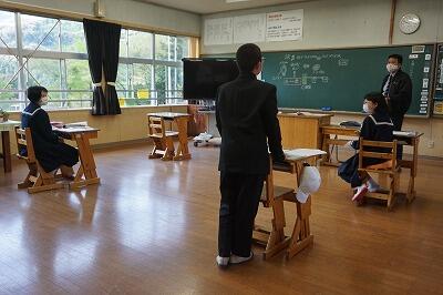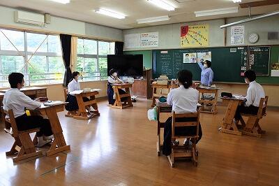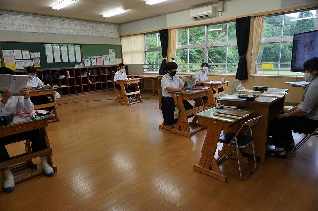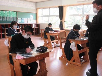 中学2年生は英語の授業、3年生は社会の授業がありました。