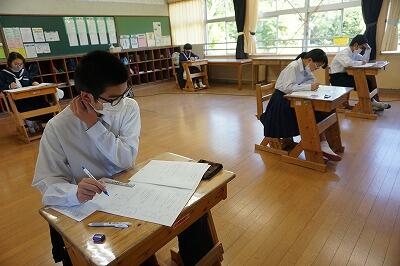 中学生は、気持ちのよい風が吹く中、定期テスト2日目を迎えました。社会・数学