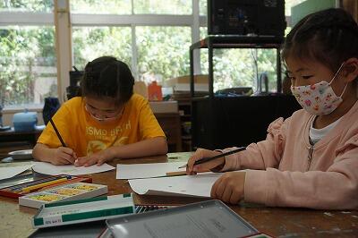 本日、1時間目は、小学生たちは一斉に書写の授業を受けました。