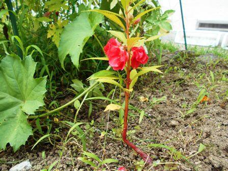 今日、ヘチマの草取りをすると、花が咲いたホウセンカがでてきました。