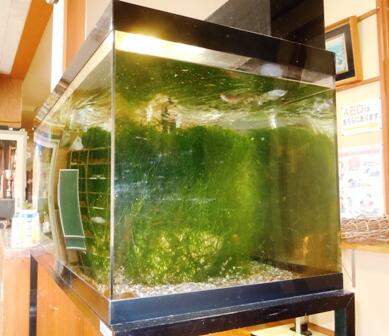 そこで、玄関前の大きな水槽をきれいにし、水草を減らし、スッキリさせて、