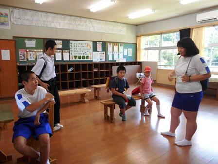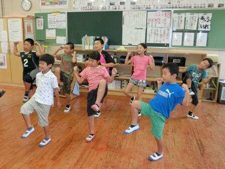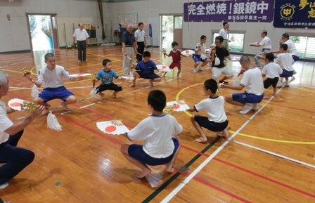 体で学ぶのは銀鏡中方式でしょうか☆ 後ろで小学生も一人一緒にやってますが・・・。