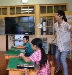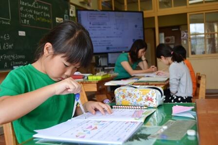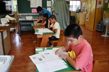 夏休みの課題を仕上げに、今日もがんばる子ども達です。