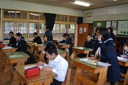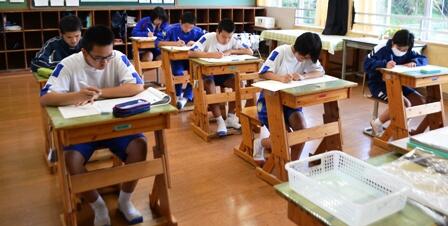 4時間目からは、さっそく授業があります。中学1年生は、数学で練習問題に取り組みました。