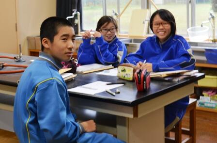 中学2年生が、理科の授業で学んだ電流のつなぎ方をジェスチャーで教えてくれました。
