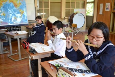 篠笛のさし指の奏法を学び、「たこたこあがれ」の練習をしました。