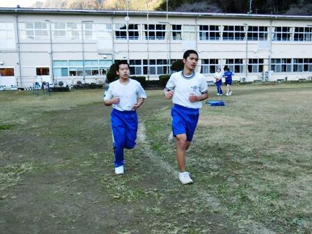 中学生は学校の周りの道路も使って、男子3キロ、女子1.5キロを走ります。