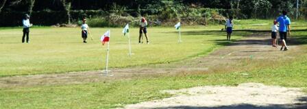 今日の5時間目、小学生は東米良スポーツ大会に向けてグランドゴルフの特訓を