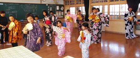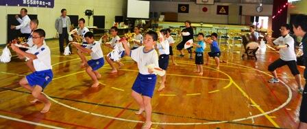龍房教室の皆さんに、男子は神楽を、女子は舞を教えていただきました。