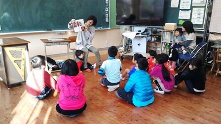 「図書ボランティア」の方に読み聞かせをしていただき、子ども達は話に聞き入っていました。