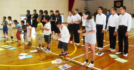 今日は、小・中学生合同で音楽大会の練習をしました。