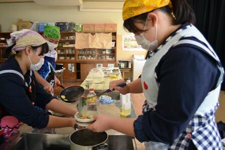 給食後なのに、自分達で作った料理をきれいに完食して満足そうでした。