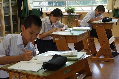 中学生の授業の様子です。集中して授業を受けています。