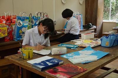 中学生は、文化祭に向けて小道具作りをしました。
