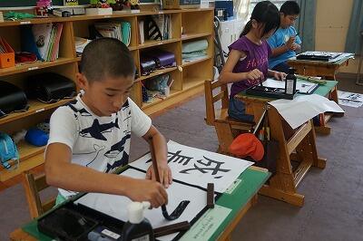 授業は、小学生の書写の時間です。
