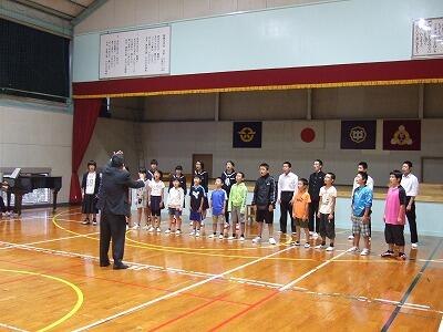 明日は西都市の音楽大会があります。今朝は最後の合同練習でした。体育館で、たくさんの先生が見ている前で、朝からきれいな歌声を響かせようと練習を頑張っていました。
