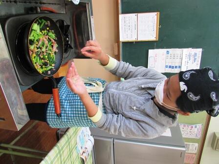 今日は、小学5.6年生の家庭科で調理実習がありました。【加熱変化を調べよう】で5年生は玉子とほうれん草をゆで、6年生は野菜とベーコンを炒めたり、スクランブルエッグを作りました。初めてとは思えないほど手際よくおいしくできました。きっと家庭でも実践してくれることでしょう!