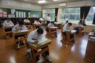 中学2年生は、理科の復習問題に集中して取り組んでいました。