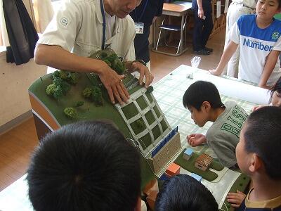 その後、模型を使って、土砂災害が起きるメカニズムを学習しました。