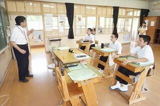 中学1年生の英語は、歌から始まり会話の練習をし、2年生は、理科で体の仕組みを学習し、